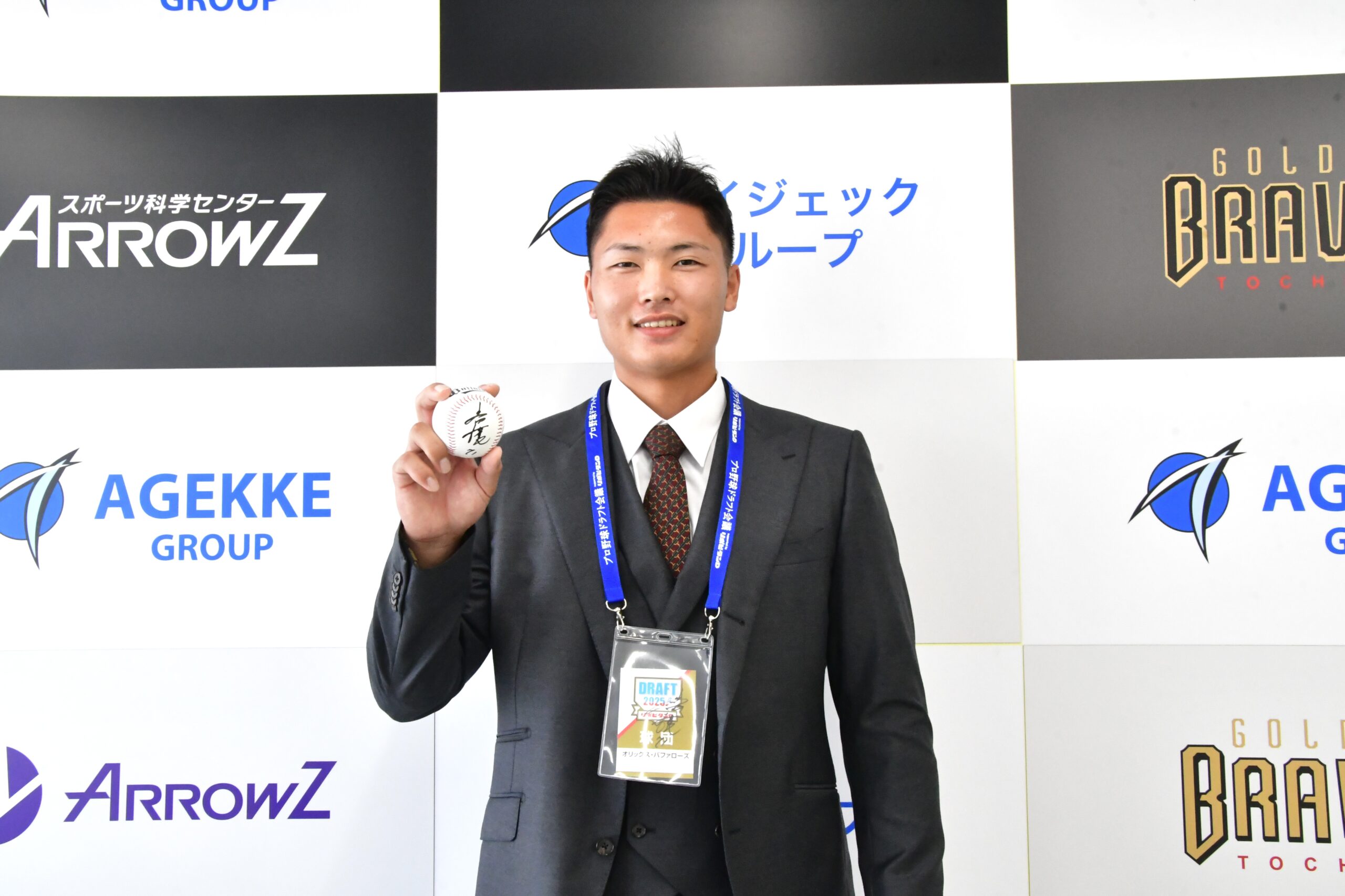 プロ野球独立リーグ・ルートインBCリーグ(Baseball Challenge League)の栃木ゴールデンブレーブスは、本日開催されました2025年プロ野球ドラフト会議において、三方陽登(みかた・はると)選手がオリックス・バファローズより育成1巡目で指名を受けましたのでお知らせいたします。三方陽登選手のこれまでの努力と活躍に心より敬意を表するとともに、今後の更なる飛躍を球団一同、心より期待しております。引き続き、三方陽登選手および栃木ゴールデンブレーブスへの温かいご声援をよろしくお願いいたします。